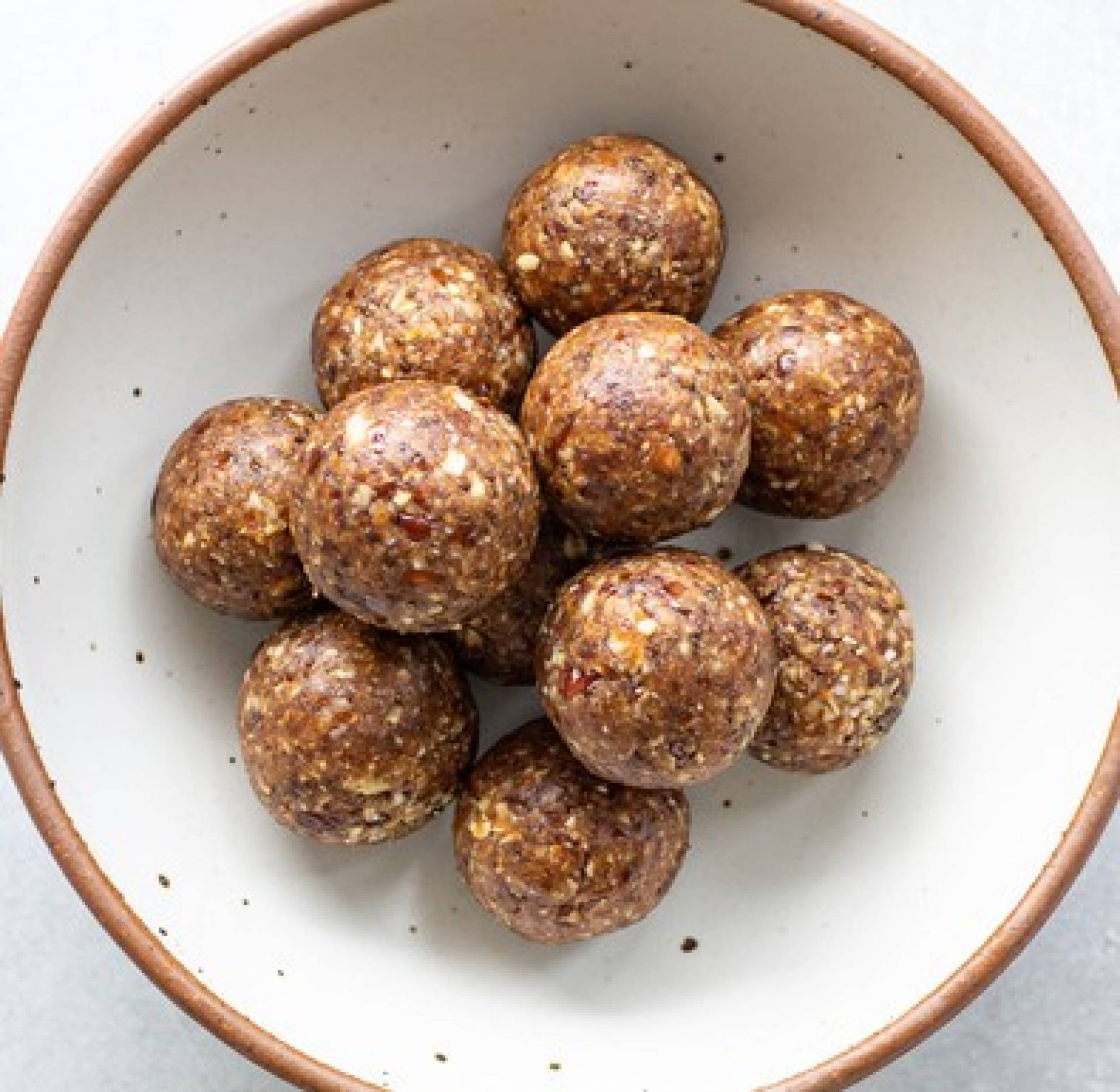 the perfect pre-workout snack or mid-day energy these protein balls are made with almond butter, dates, protein powder, cocoa powder, cinnamon, vanilla and sesame seeds. Each order comes with a pack of 5 balls. Nutrition facts are for the entire container.